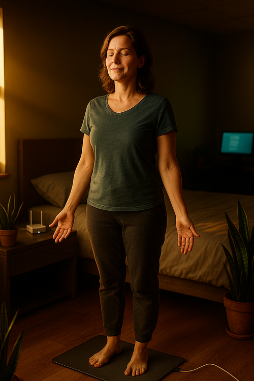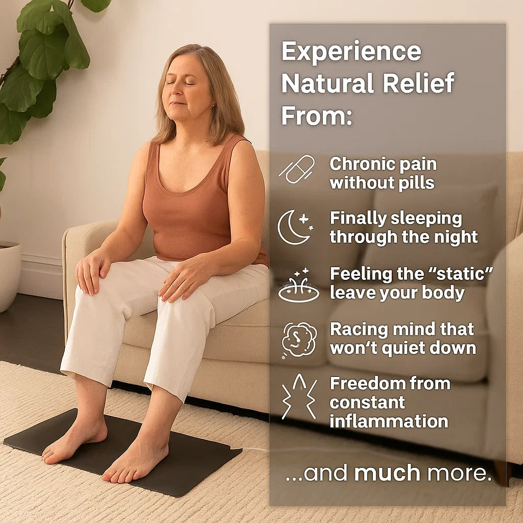 The moment you connect to the grounding mat, something shifts. That overwhelming "buzzing" sensation in your mind begins to quiet. The tension you've carried for years starts to melt away.It's like someone finally turned down the volume on your nervous system. Within minutes, you'll feel more centered, more present, more like yourself again. The constant background anxiety that modern life creates simply... dissolves.
