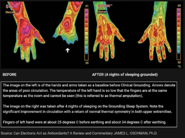 See the proof: Thermal imaging shows dramatic circulation improvement after just 4 nights of grounding. The Earth's free electrons act as natural antioxidants, reducing inflammation and restoring healthy blood flow to your extremities. From "thermal amputation" to warm, healthy circulation - your body's natural healing response, activated.